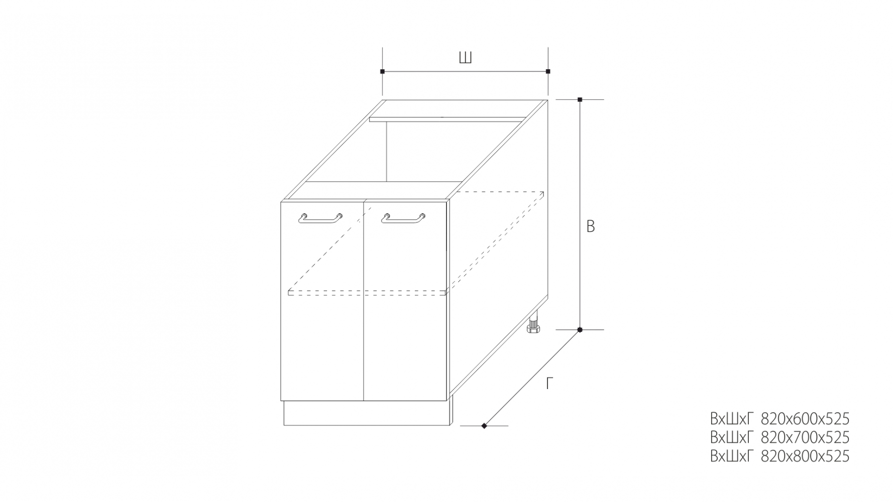 ВхШхГ: 820х600х525 мм.